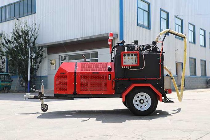 小型灌缝机采用液化气加热系统,导热油循环,使沥青或灌缝胶快速融化,通过沥青泵的压力由出料口出料而达到裂缝处理的效果。通过压力注射式灌缝,使材料和缝壁紧密结合,转向灵活的万向轮跟进裂缝,使灌缝效果美观。由于灌缝材料使用沥青或灌缝胶,在温度较低时容易凝固,灌缝机配有雅马哈发电机组提供整机动力,灌缝机在出料管部位采用恒温控制系统,避免材料烧焦老化,保证出料的顺畅。