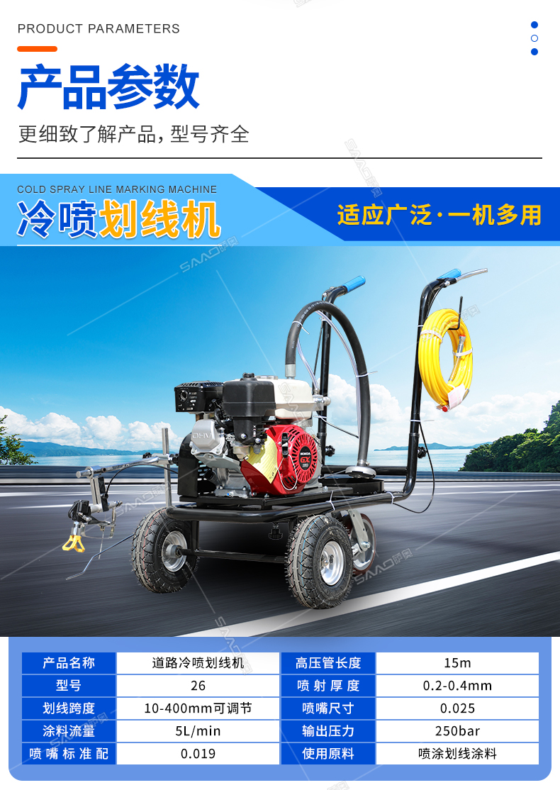 冷喷划线机是常温标线施工的专用设备,喷出的线型清晰、流畅、饱满、均匀。 ...