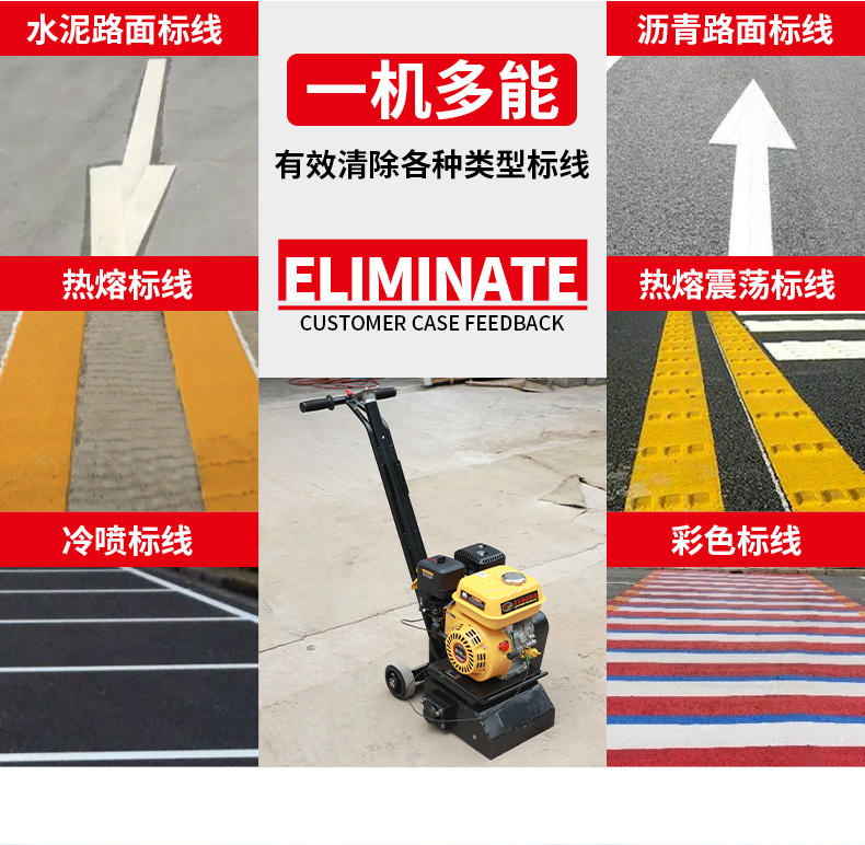 标线清除机是用来清除残损、龟裂、变色、错划等标线的专用型清除设备。该机使用发动机带动打磨头高速旋转打磨头在旋转力的作 ...